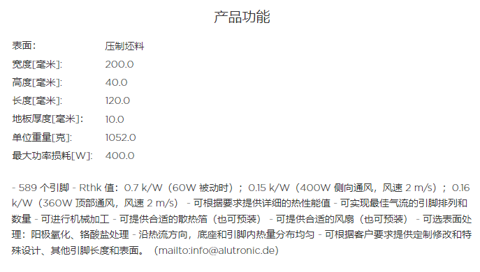 ALUTRONIC 针状散热器200-120-40-AL系列