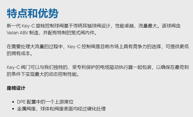 VELAN 旋转控制球阀KEC-KEY-KSC-BTK系列
