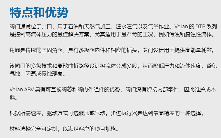 VELAN 可调角度节流控制阀DTP系列