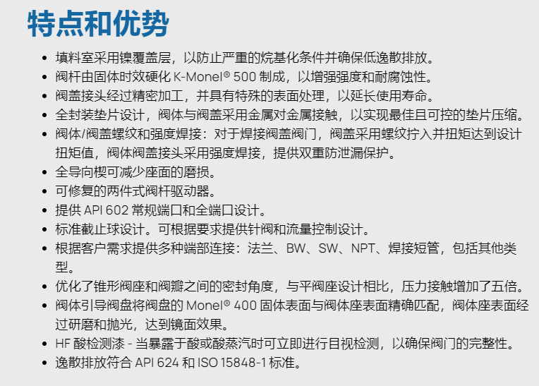 VELAN 氢氟酸烷基化截止阀API 602系列