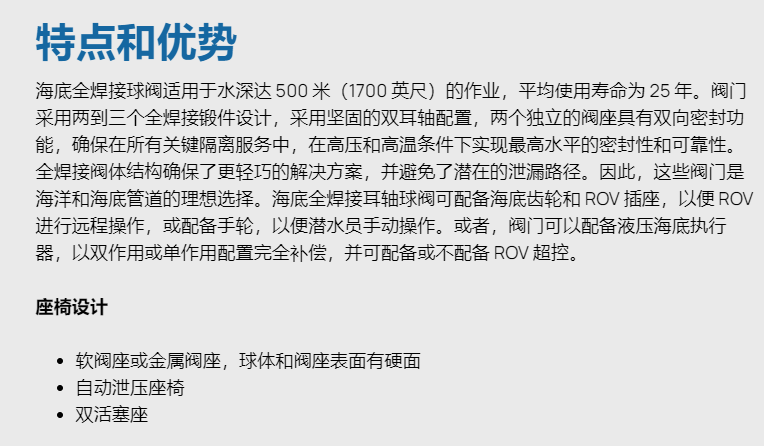 VELAN 海底全焊接侧入式耳轴球阀SXP系列