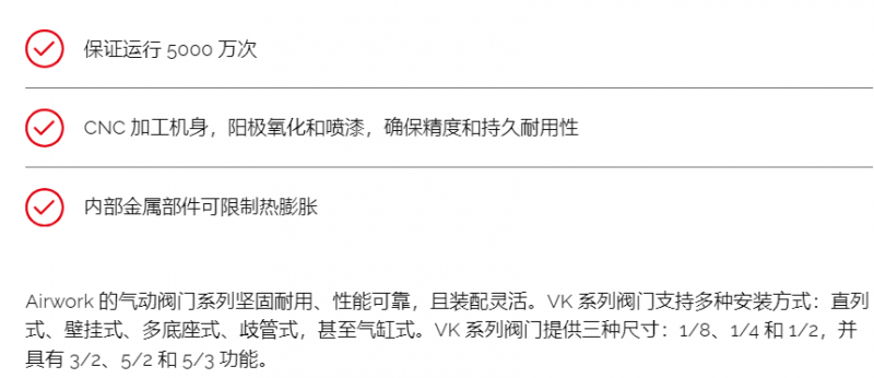 AIRWORK 气动阀VK系列