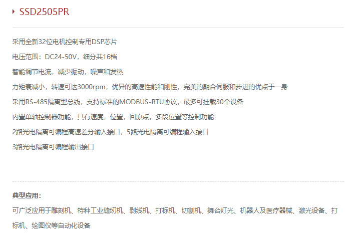 YAKOTEC 总线型闭环步进驱动器SSD2505PR系列