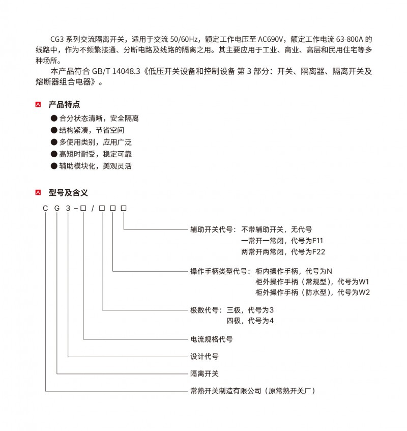 RIYUE 交流隔离开关CG3系列