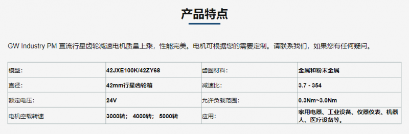 GW INDUSTRY 直流行星减速电机42ZY68系列