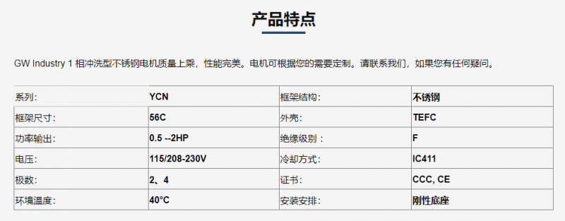 GW INDUSTRY 不锈钢电机单相冲洗型-56&145T
