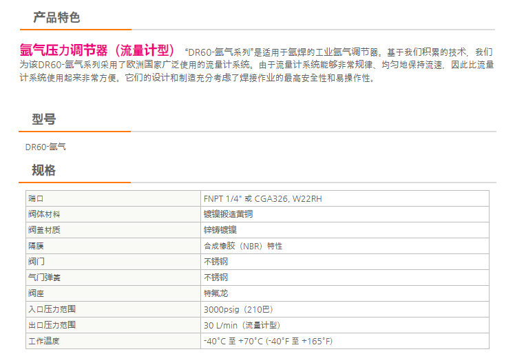 DRASTAR 氩气压力调节器DR60系列