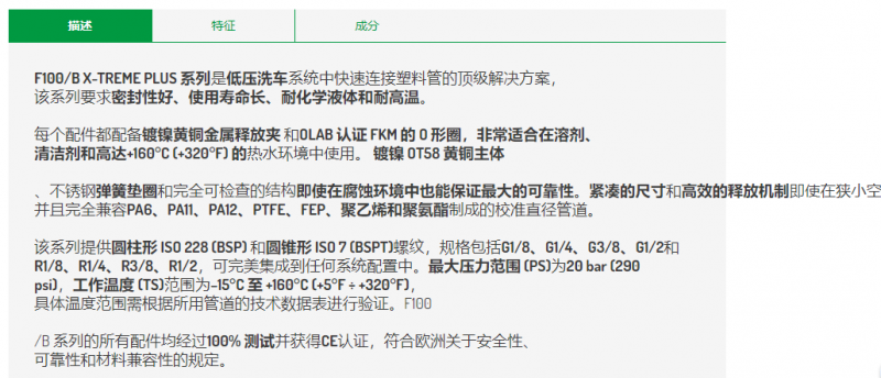 OLAB 快插接头F100/B X-TREME PLUS系列