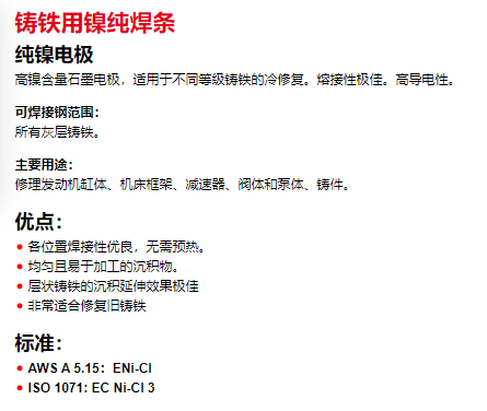 GCEdruva 铸铁用镍纯焊条系列