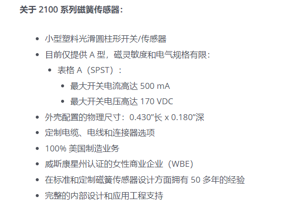 REED SWITCH 磁簧传感器2100系列