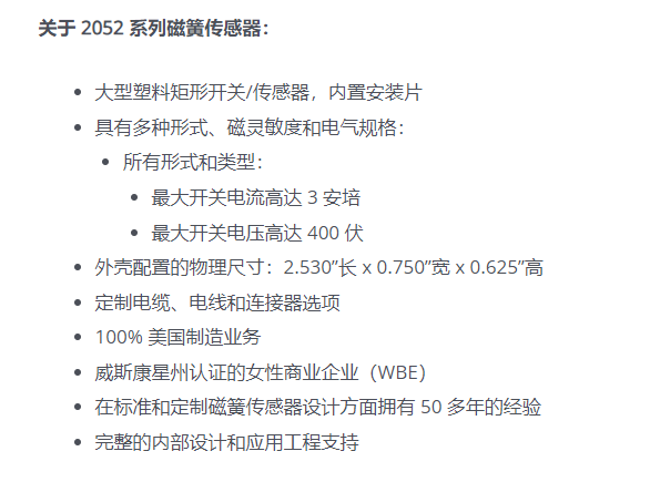 REED SWITCH 磁簧传感器2052系列