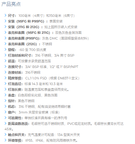 Budenberg 充气温度计95FG-211FG-212G
