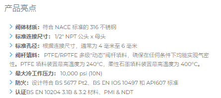 Budenberg 针阀 1/2 英寸10N8M8FS系列