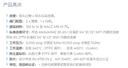 Budenberg 3 阀差速歧管63NR系列