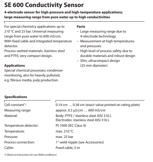 PCME 电导率传感器SE 600系列