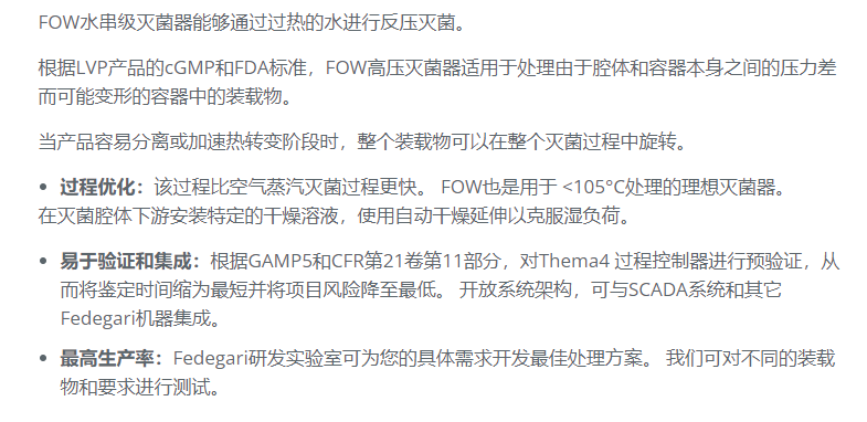FEDEGARI 过热水喷淋灭菌柜FOW系列