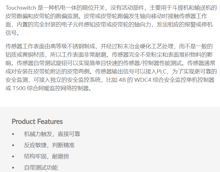 4B GROUP 皮带轮跑偏传感器TOUCHSWITCH系列