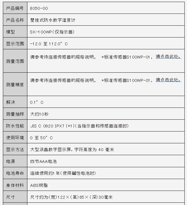 SK SATO 壁挂式防水数字温度计SK-100WP系列