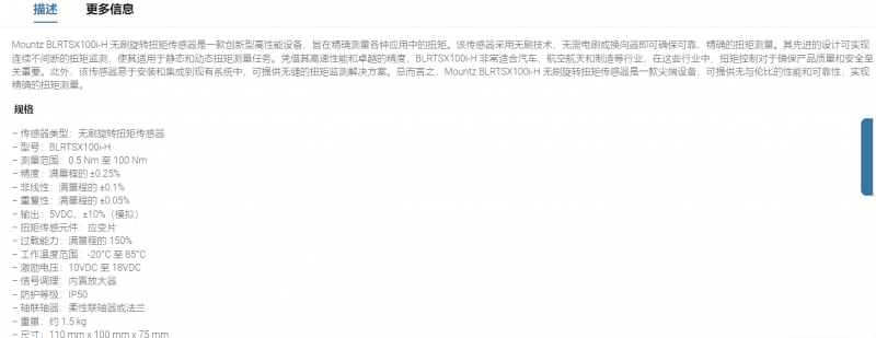 MICROPRECISION SA 无刷旋转扭矩传感器系列