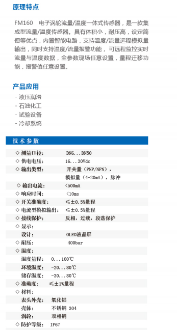 FOREVER 电子涡轮流量温度传感器FM160系列