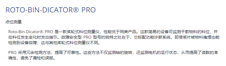 BINDICATOR 桨轮式料位测量仪ROTO PRO系列