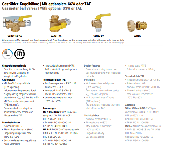 BEE 燃气表球阀GSW 或 TAE系列