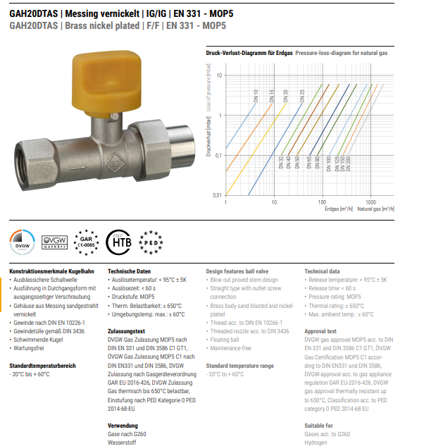 BEE 螺纹连接气体球阀GAH20DTAS系列