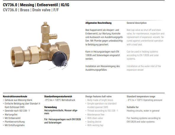 BEE 带排水口的盖阀CV736.0系列