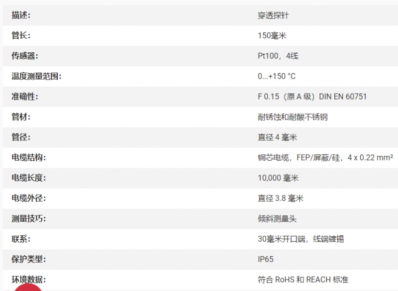 B+B 高压灭菌器探头 Pt100 | 斜角设计系列