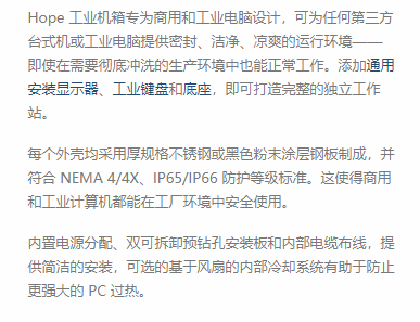 Hope Industrial 商用和工业用PC机箱系列