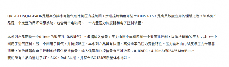 KAO LU 超高分辨率比例压力调节器QKL-B1TR系列