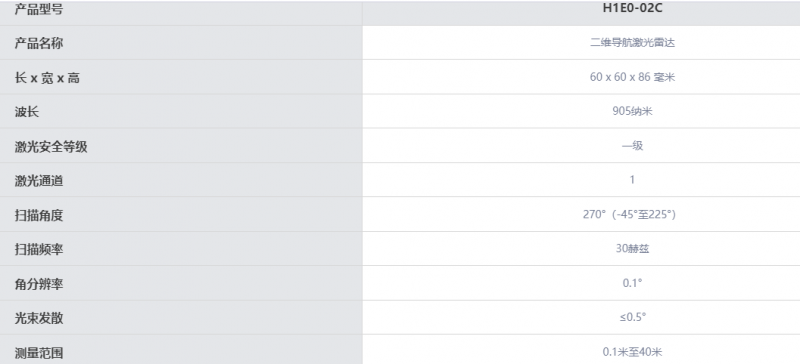 SEER 二维导航激光雷达传感器H1E0-02C系列