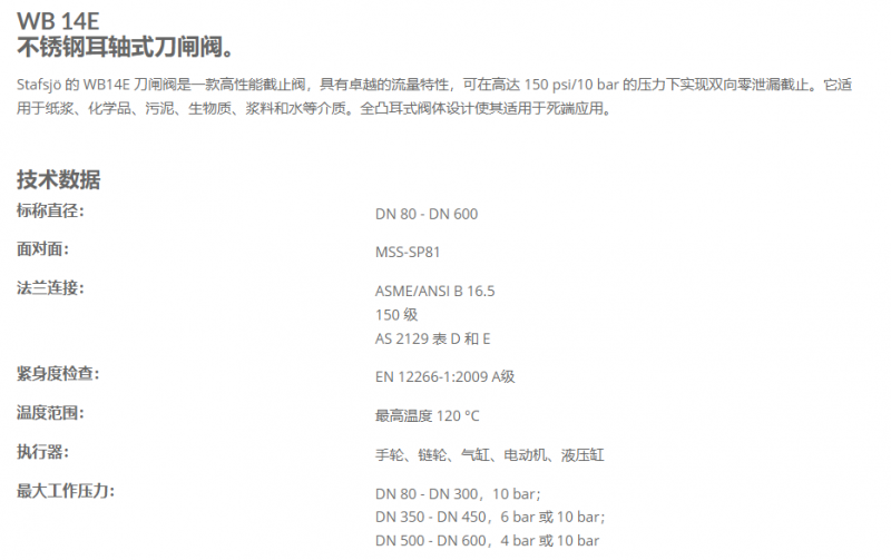 EBRO 不锈钢耳轴式刀闸阀WB 14E系列