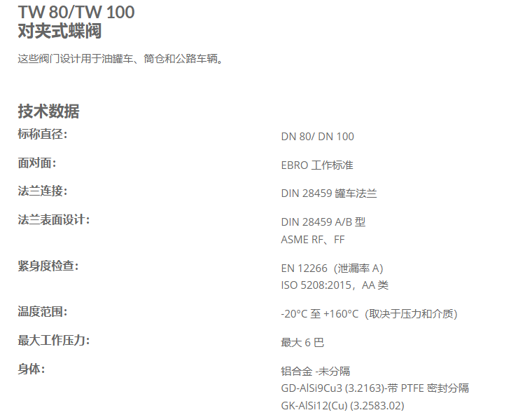 EBRO 对夹式蝶阀TW 80/TW 100系列