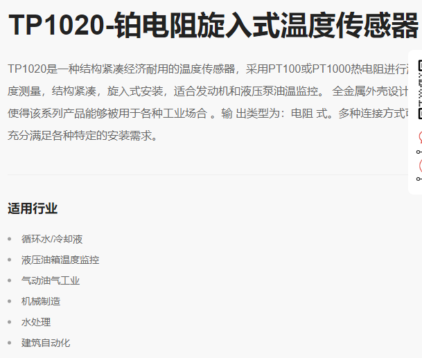 NEXON 铂电阻旋入式温度传感器TP1020系列