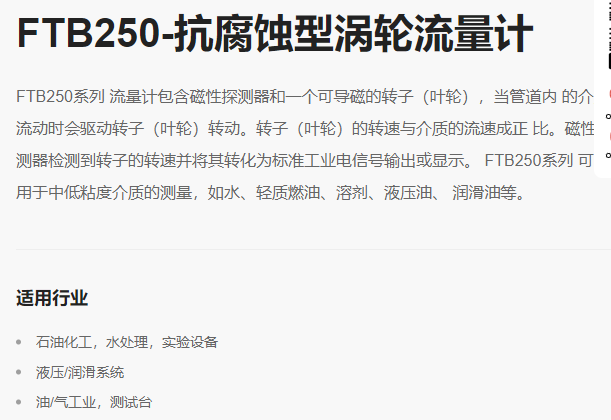 NEXON 抗腐蚀型涡轮流量计FTB250系列