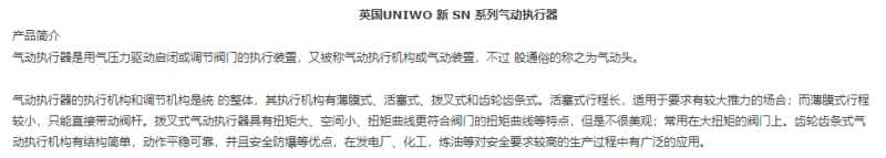 UNIWO 气动执行器新SN系列