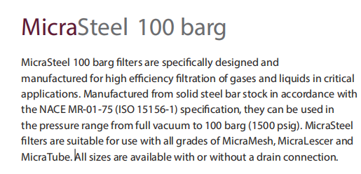 MICRAFILTER 过滤器350 barg系列