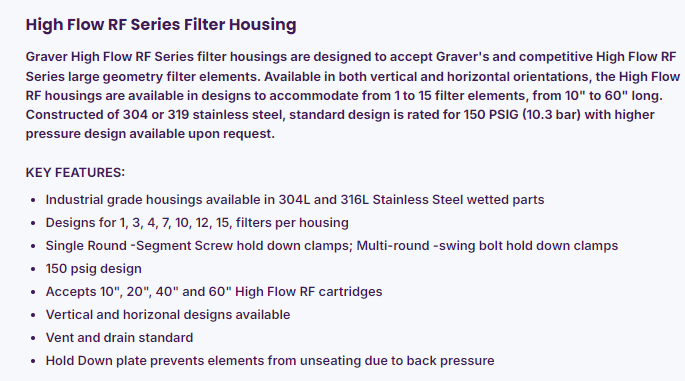 Graver Technologies 过滤器外壳RF系列