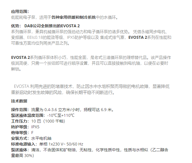 DAB 湿式转子电子循环器EVOSTA 2系列