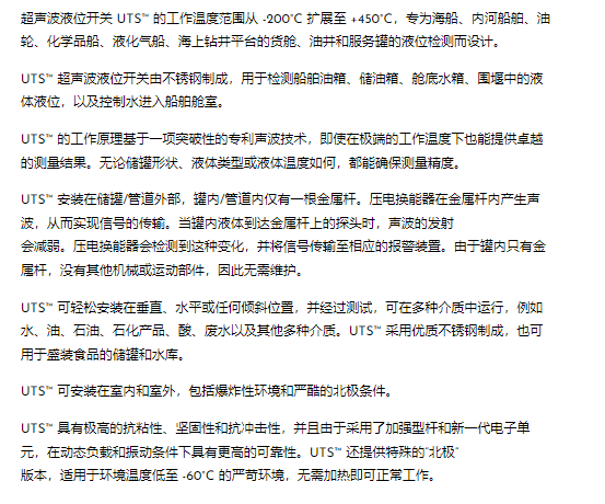 API MARINE 超声波液位开关UTS系列