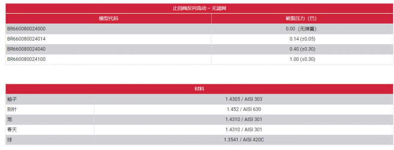 Roplan 8.0mm反向止回阀BR系列