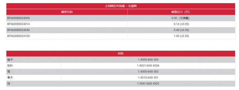 Roplan 正向流止回阀BF系列