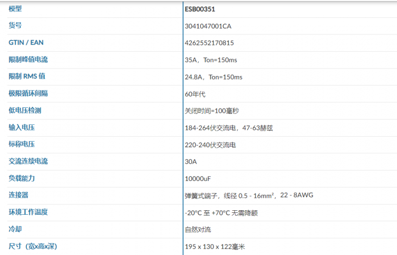CAMTEC 浪涌电流限制器ESB00351系列