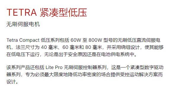 MOTOR POWER 无刷伺服电机TETRA紧凑型低压系列