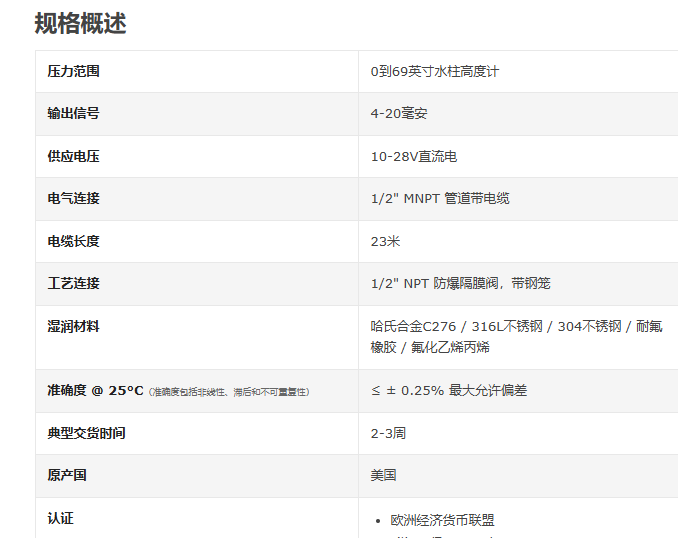 CORE SENSORS 冲洗隔膜式液位变送器CS82系列