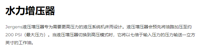 Jergens 液压增压器系列