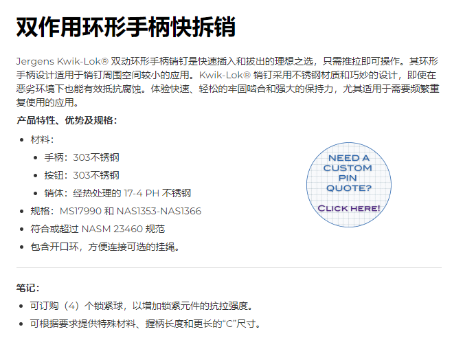 Jergens 双作用环形手柄快拆销系列