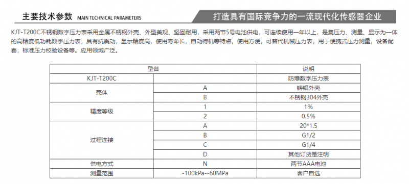 KJTDQ 防爆数字压力表KJT-T200C系列