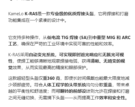 KameLo 自动变光紧凑型焊接面罩K-RAS系列